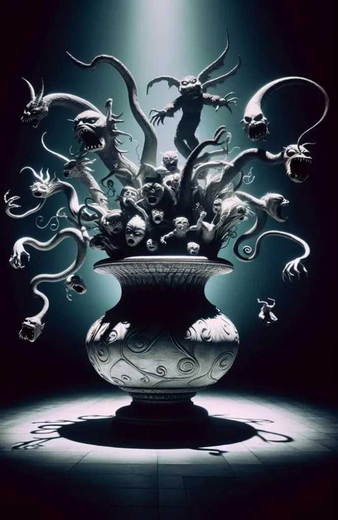 (nella mitologia greca è il contenitore di tutti i mali che si riversarono nel mondo dopo sua apertura) e ne sono usciti questi esseri mediocri e pericolosi.